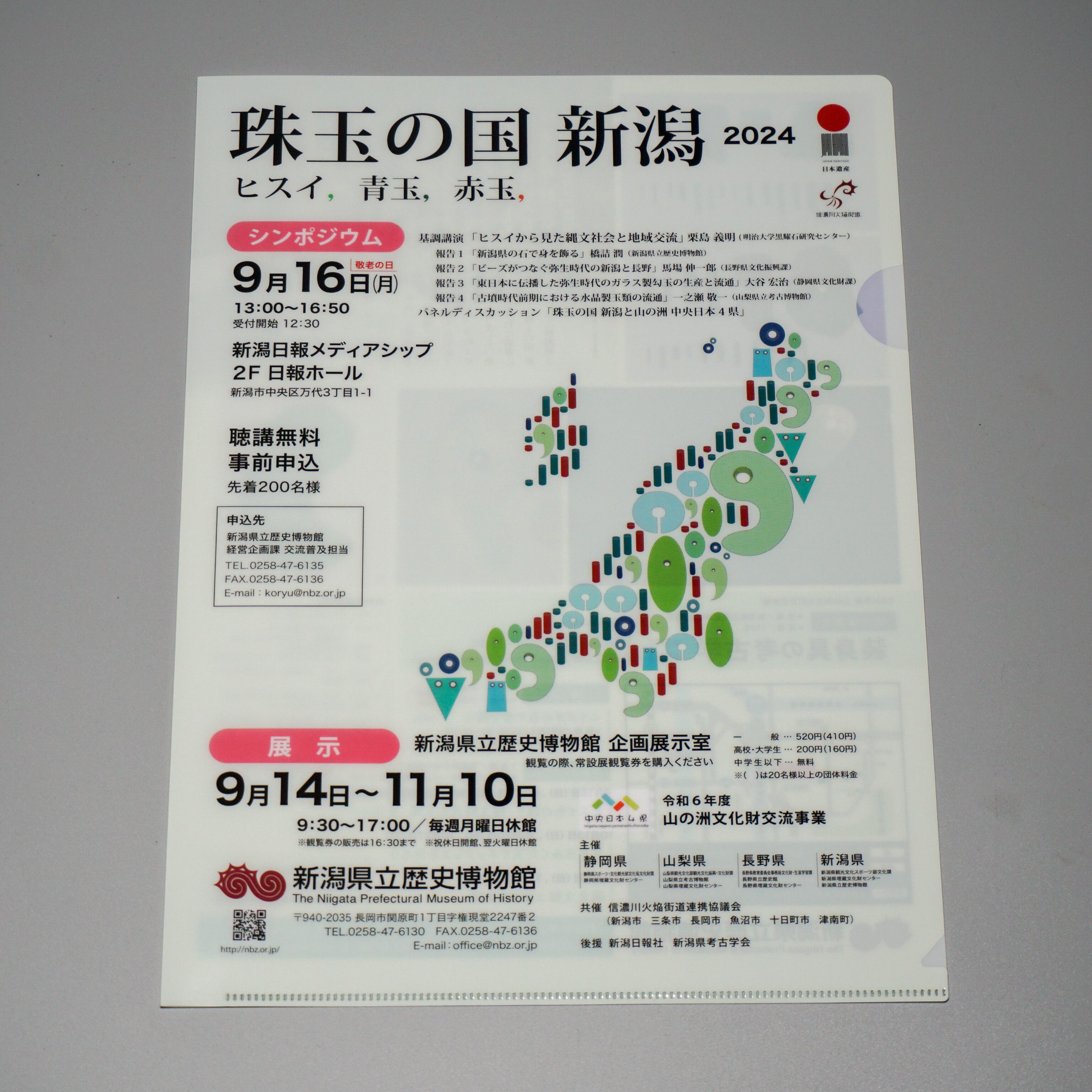 新潟県立歴史博物館で開催された2024年度秋季企画展「珠玉の国 新潟」のチラシをそのままクリアファイルにしました。